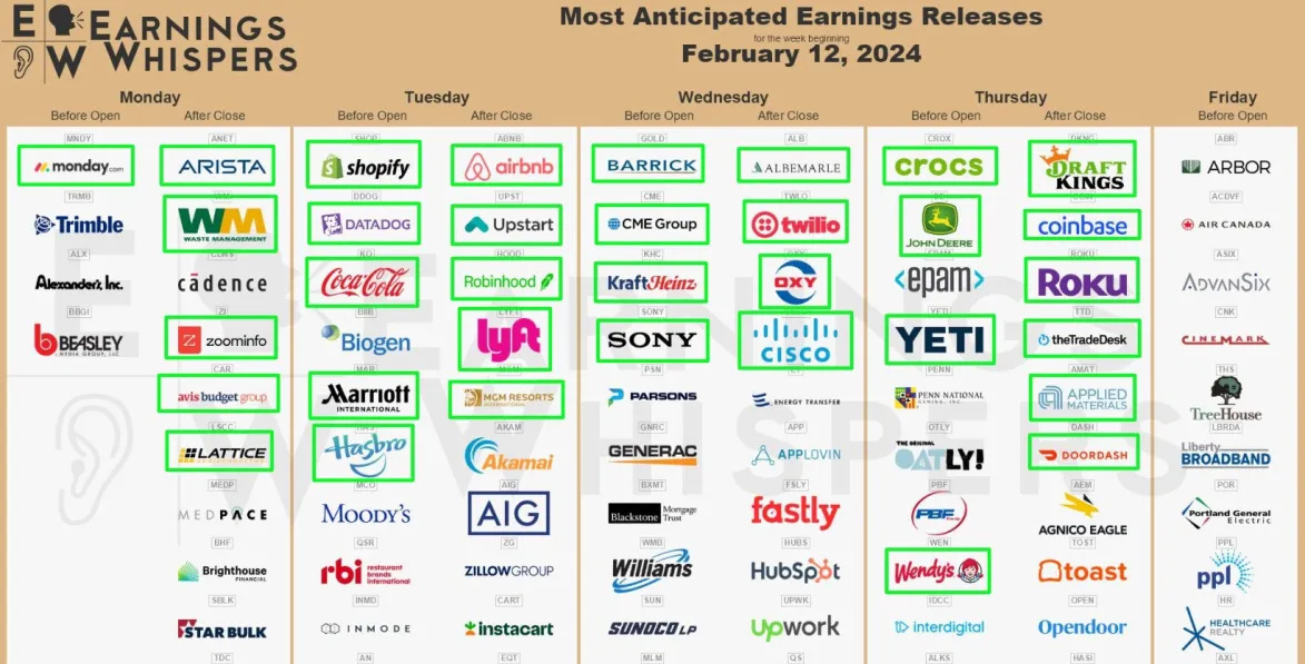 Finally, the earnings are still coming up. Not the companies that will drive the market, but remember, a high Q4 GDP growth makes earnings beats more likely than not.