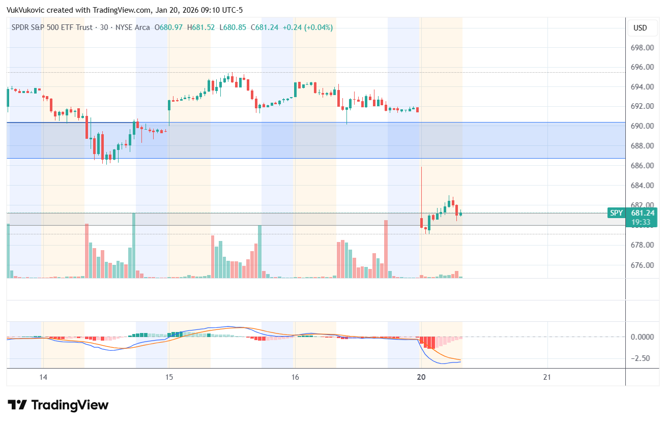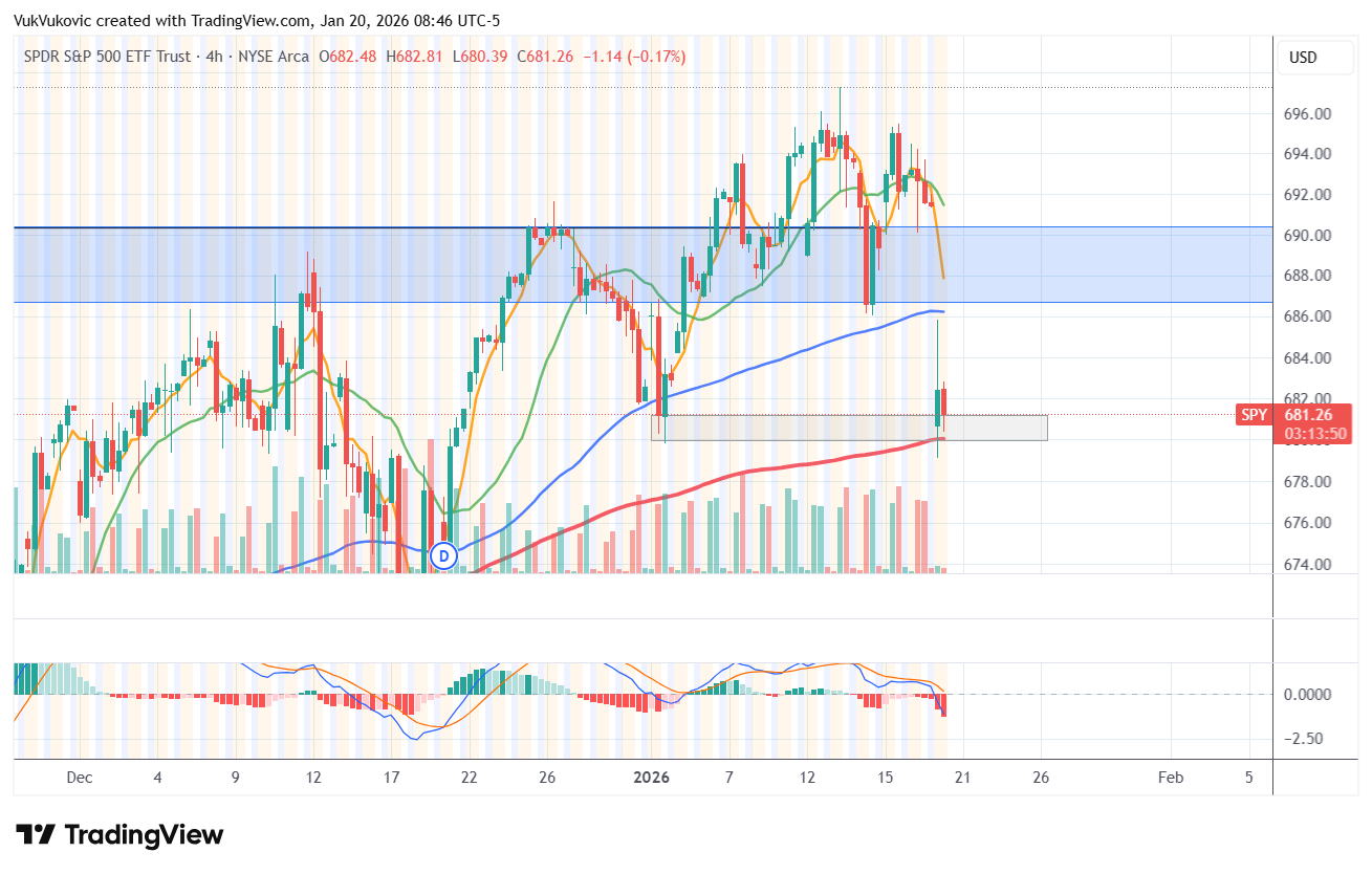 SPX has, over the weekend, pushed below a key support area. Over-the-weekend political uncertainty over Greenland and tariffs started a strong sell-off in futures.