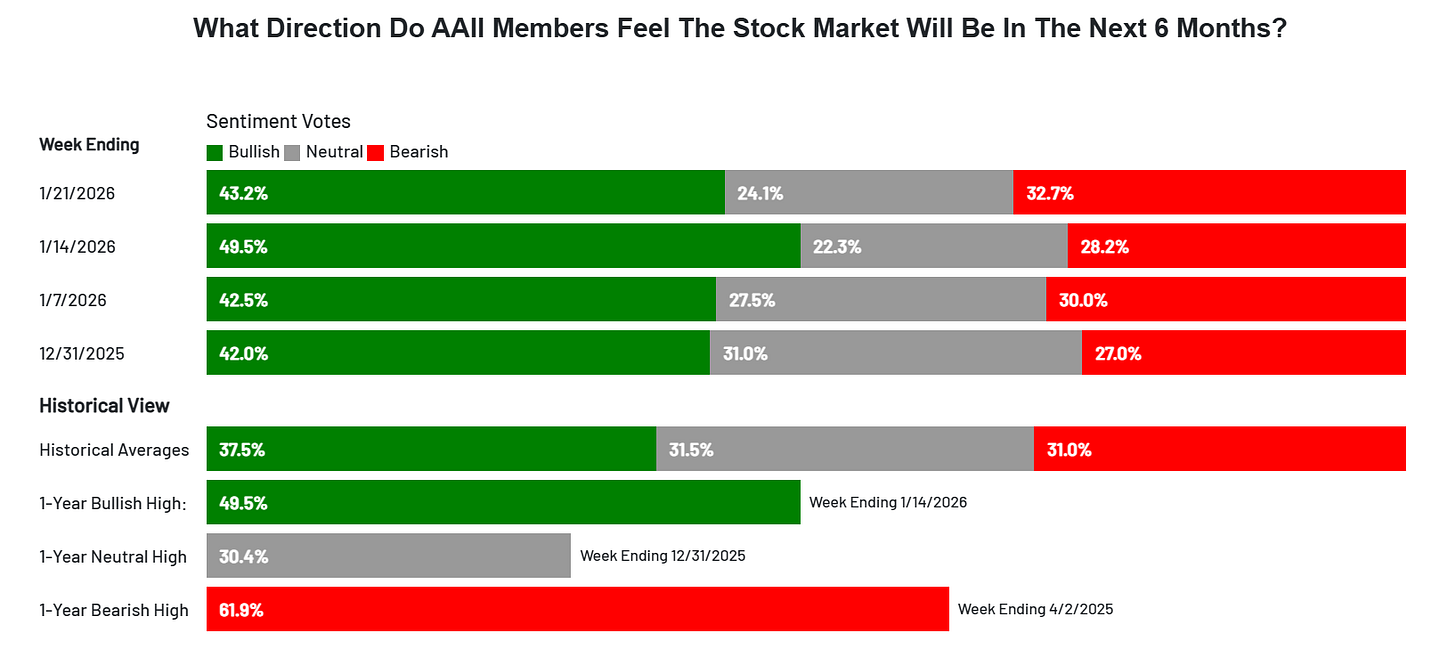 But – and you knew a “but” was coming – all of this is very well known and expected. Markets are forward-looking. By the time everyone is on the same side of the boat (”stimulus will boost everything forever!”), the near-term risk is that something tips the boat. I believe that “something” could simply be positioning and sentiment hitting an extreme, as we discussed, possibly catalyzed by an unexpected headline or a data hiccup. It could be an inflation report that’s too hot or too cold, a curveball from the political arena (let’s not forget 2026 is a midterm election year with plenty of policy uncertainty), or an AI scare as noted.