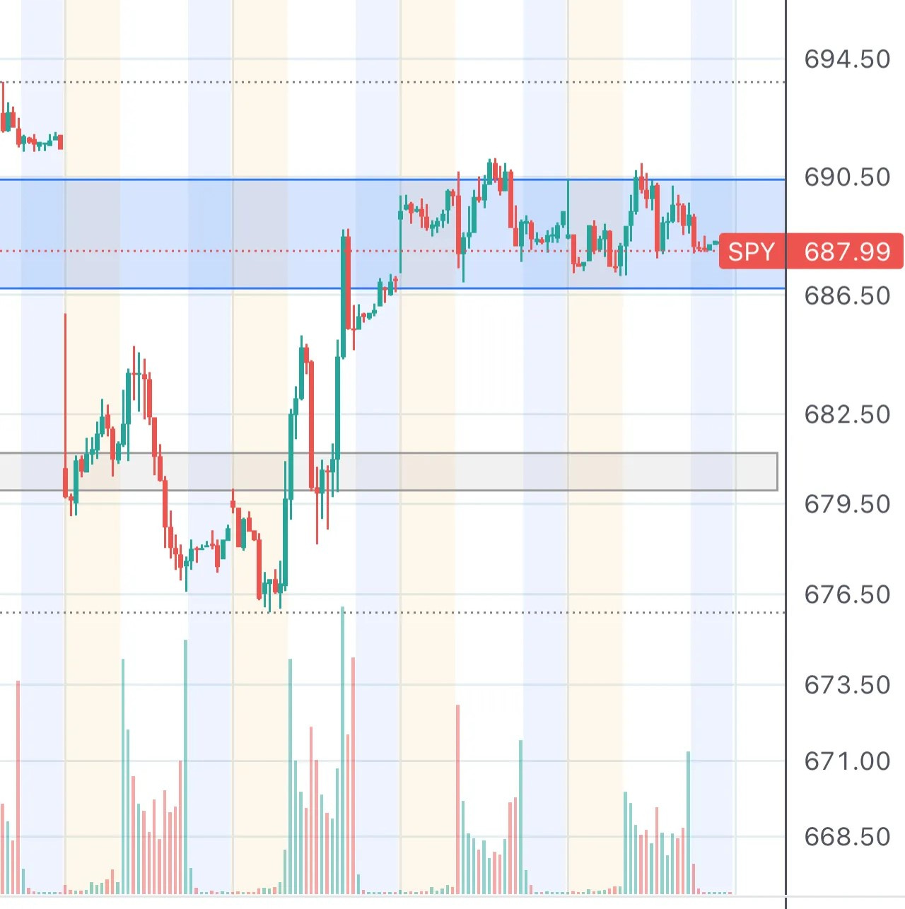 “if SPY bounces back to 686-ish, and fails to clear the prior resistance, meaning fails to jump back up above it, this would signify a bearish confirmation to the downside and we can expect the sellers to reengage at that level.”