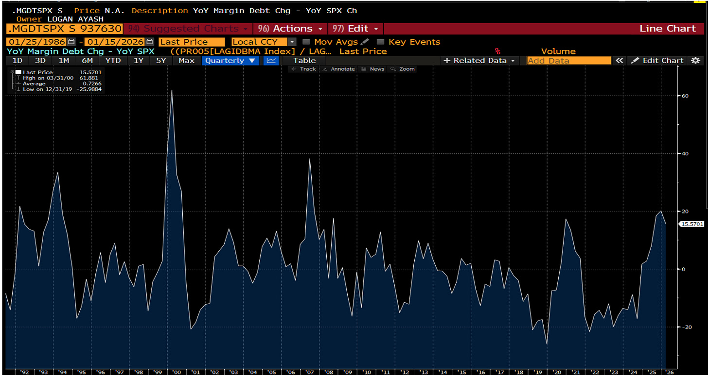 If there’s one thing that keeps me up at night, it’s the extreme optimism and leverage we see in the market right now. Virtually every indicator of positioning and sentiment is flashing contrarian red. Take margin debt, for example – investors are borrowing against their portfolios at a blistering pace.