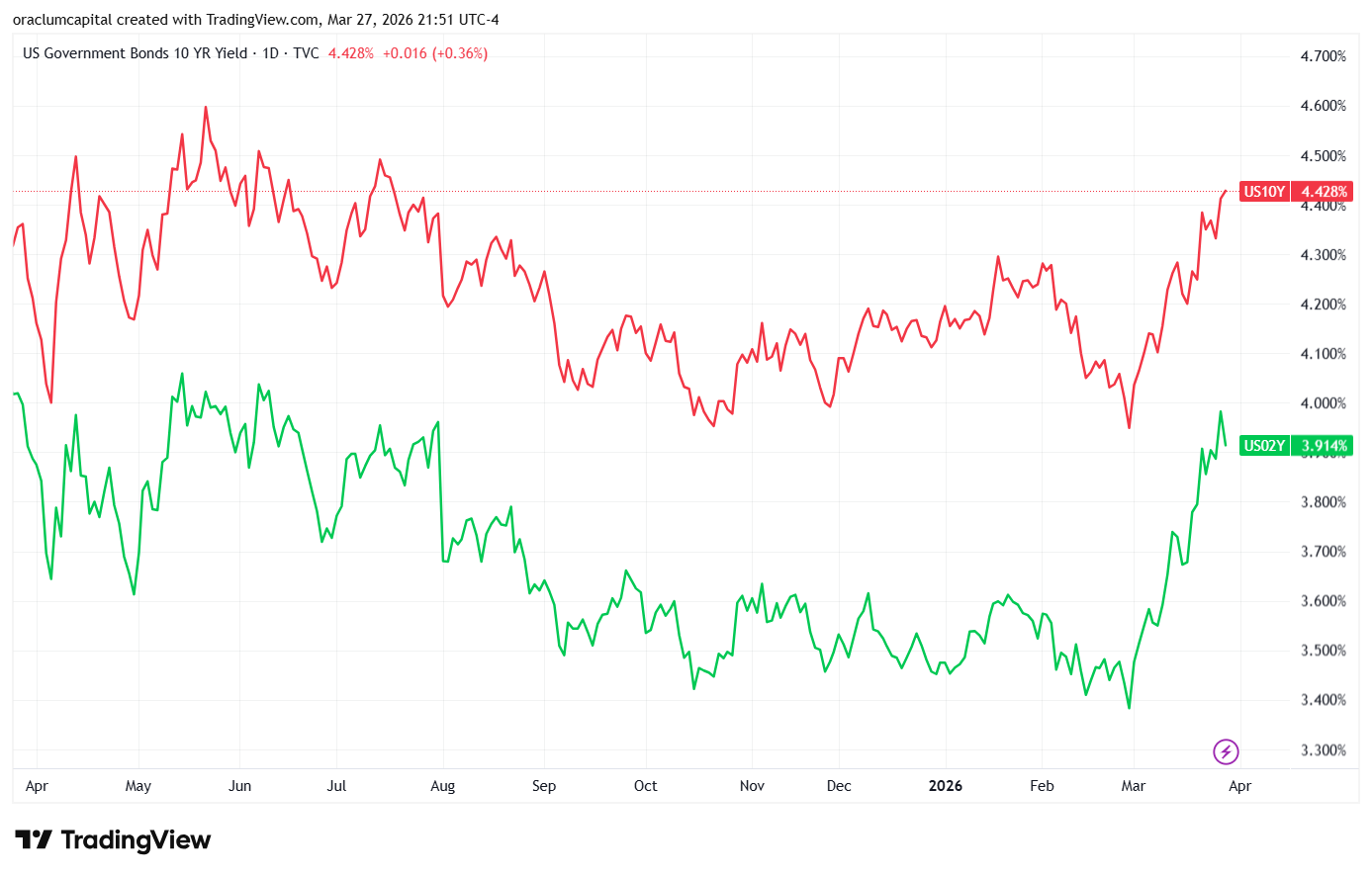 The effects of Trump's war negotiation announcements (i.e. social media posts) are experiencing an exponentially lower shelf life. They used to last for a few days, now it's not even an hour (see Thursday after close). As long as there is no end in sight and all messaging is unilateral, expect the selling to continue. I do, however, think that the bond market will exert enough pressure for the Trump administration to pull the plug, like it did in April last year. We are very close to those dangerous levels now. Just look at how the 2Y shot up to 4% during March: